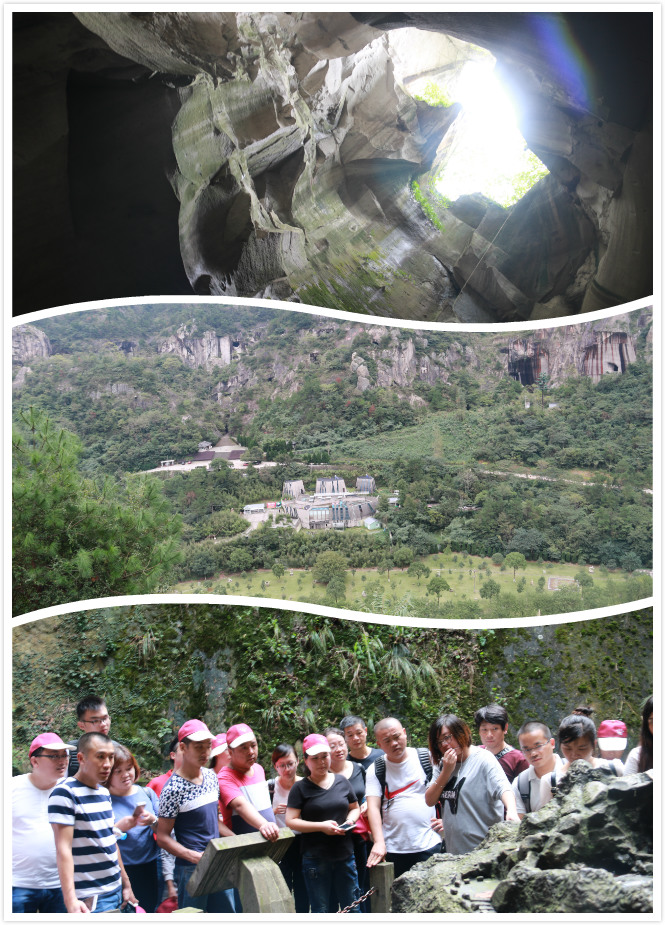 我們來到長(zhǎng)嶼硐天,逃離了城市喧囂,行云流水般的舒緩節(jié)奏慢慢上演。望著南北朝以來人工開采石板后形成的石文化景觀,不禁感嘆人類的偉大。據(jù)導(dǎo)游介紹,這里歷經(jīng)1500余年,共鑿出了28個(gè)硐群,1314個(gè)硐體。隨后,我們參觀了石園、四龍九曲含珠橋、彌勒佛像、巖硐音樂廳、欣賞亞洲唯一的自然巖硐音樂,還有水滴石錢、懸空井、觀音壁等。