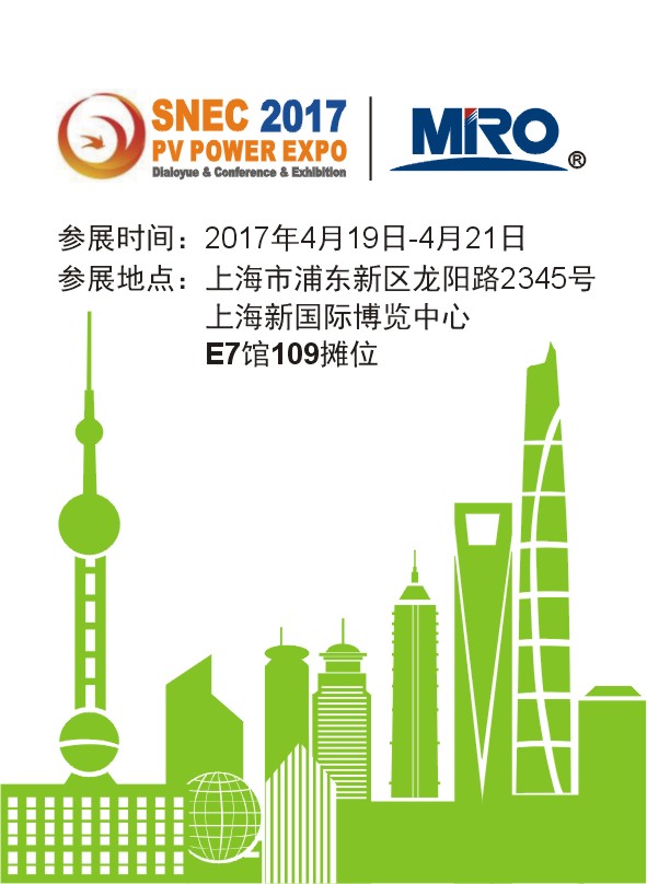 茗熔電器保護系統(tǒng)有限公司將于2017年4月19-21日,參加SNEC第十一屆(上海)國際太陽能產(chǎn)業(yè)及光伏工程(上海)展覽暨會議,展位號E7-109。參展產(chǎn)品為光伏熔斷器產(chǎn)品。屆時歡迎各界客商蒞臨參觀洽談。
