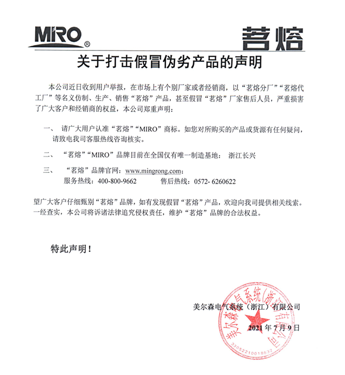 打擊假冒偽劣產(chǎn)品的聲明