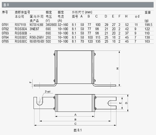 本系列熔斷體額定分?jǐn)嗄芰χ?00kA。