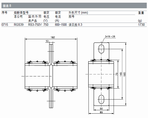 本系列熔斷體額定分斷能力至100kA。